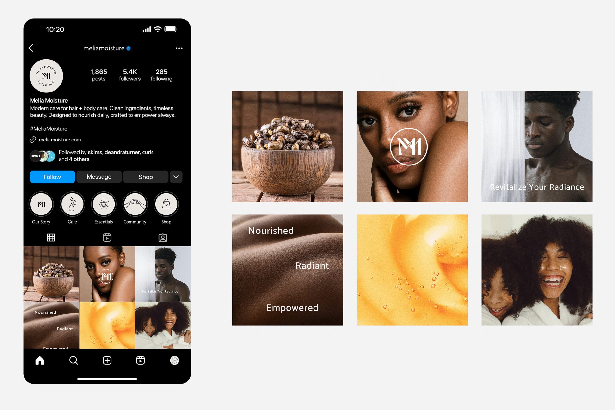 I led the brand identity development for Melia Moisture, a beauty brand rooted in dual benefits for hair and skin. The challenege was creating an identity that felt both sophisticated and functional in a saturated self-care market. My solution was a versatile double-M monogram paired with an elegant type system, designed to work seamlessly across packaging, campaigns, and retail. This identity not only elevates the brand’s perception but also positions Melia Moisture as a premium contender in beauty and wellness.